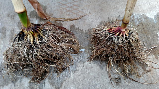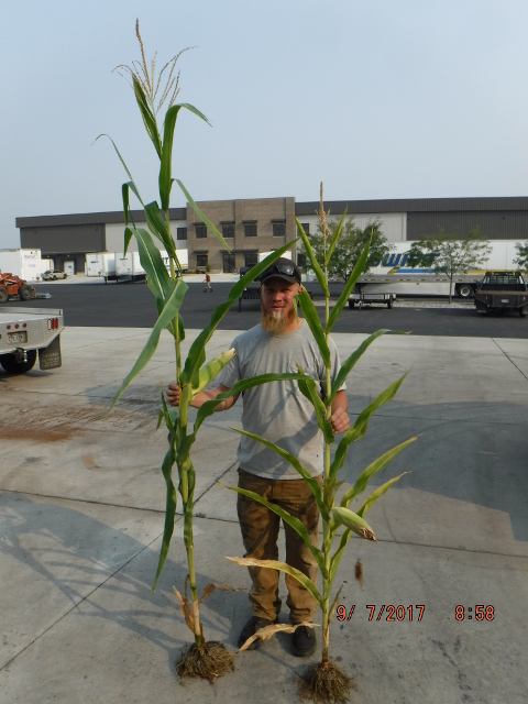 In the picture at the left, you can see Tyler holding both plants. The treated stalk on the left is 26 inches taller than the untreated stalk. In the root picture, you can also see the root system on the treated stalk (left) is significantly larger than the untreated stalk (right).