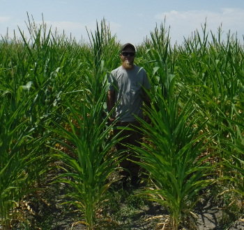 One of our local neighbors here in Logan, Utah treated one field of silage corn as a test to compare against an adjacent field that was untreated. They used our Dry Seed Treatment for Corn and mixed it with the seed before planting. Both fields received the same fertilizer, same watering schedule, and the same rainfall (or lack of it). We started with a very wet spring and then quickly transitioned to a very hot and dry summer. These pictures were taken at the beginning of August, 2017.