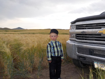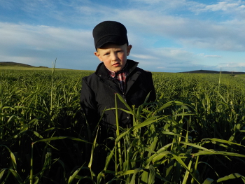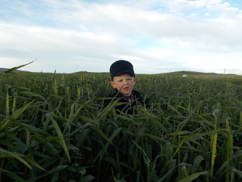 As part of their spring nutrition program, they were applying one of our Bio Minerals Technologies foliar packages to a 300 acre field of winter wheat. They had some foliar spray left over, so he decided to apply it to about 4 acres of the barley field and see if it made a difference. The pictures below show the difference, illustrated against Ed's young grandson.